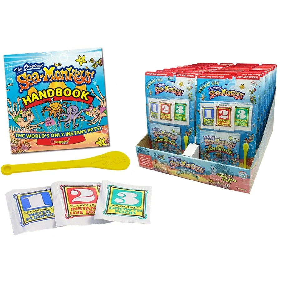 Sea Monkeys Instant Life Egg contains a pouch with a mysterious ingredient that can do wonders. There are numbered pouches that come in the set. When the instant live eggs pouch (pouch number two) is combined with packet number one, which contains the water purifier, it hatches immediately. Once the egg hatches, you now have a live baby sea monkey. The iconic sea monkeys that come to life have been one of the favourite aquatic pets of many kids to date. It features a water purifier, new magnifying glass, instant life Sea monkey eggs, sea monkeys growth food, calibrated growth food measuring spoon, a detailed instructions manual. Kindly note that using good quality spring bottled water is essential to hatch the sea monkeys. Tap water is mostly contaminated and will not work. Sometimes purified water may also fail due to additives. Therefore, it is recommended to use one hundred percent spring bottled water to get the best result.