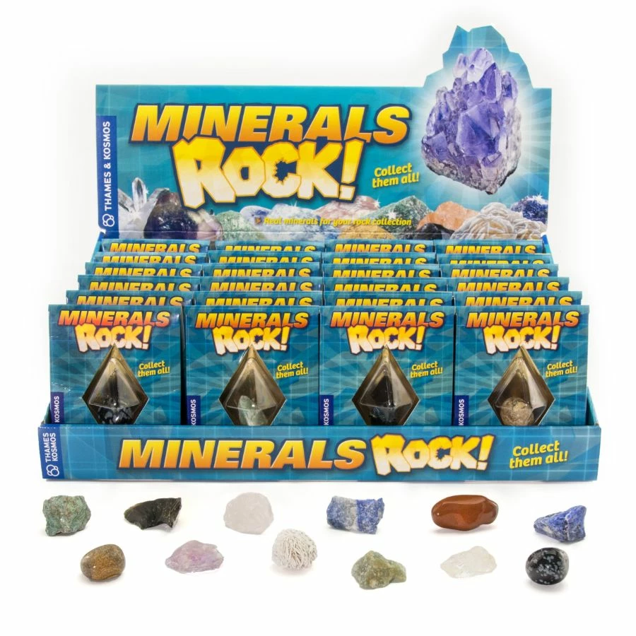 Collectors will appreciate Thames & Kosmos Mineral Rock Specimen. Begin a new rock collection or add to one that already exists. There are 12 minerals in total in the pack. A total of 24 mineral specimens are included in the set, two of each of the 12 main mineral types. Each specimen comes with a handbook that explains the scientific and cultural importance of each mineral type. Each mineral specimen should be stored in its diamond-shaped plastic box. The collection includes 24 mineral specimens, making it ideal for party favours or stocking stuffers! Amethyst, Aventurine, blue quartz, desert rose, fuchsite, obsidian, picture jasper, quartz, red jasper, rose quartz, snowflake obsidian, and sodalite are the 12 minerals to collect.